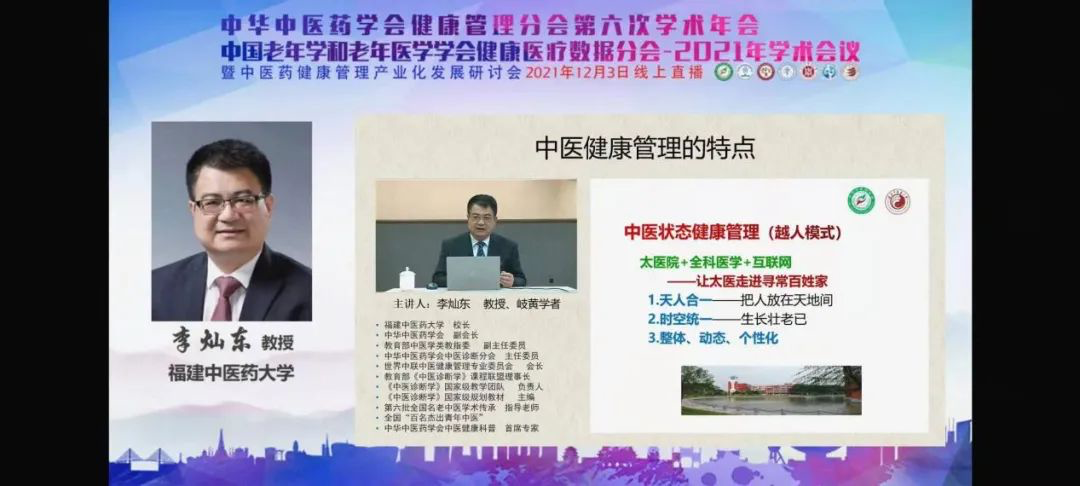 2021年12月3日,中国老年学和老年医学学会健康医疗数据分会、中华中医药学会健康管理分会2021年学术会议暨中医药健康管理产业化发展研讨会在线成功举办。