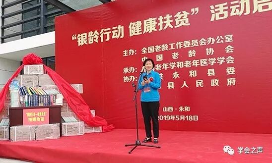 5月18日上午,学会承办的“银龄行动 健康扶贫”公益活动在山西省临汾市永和县举行启动仪式。全国老龄办党组成员、中国老龄协会副会长肖才伟,宣传部主任庞涛;中国老年学和老年医学学会会长刘维林、学会副会长中国科学院大学医院教授、妇产科主任、学会妇科分会主任委员高国兰、学会副会长中科院心理研究所研究员、学会老年心理分会主任委员韩布新;永和县人民政府副县长靳亚伟,永和县卫生健康和体育局局长李永正、永和县医疗集团相晓军院长以及赴永和扶贫的学会直属医学分会专家组,新闻媒体代表、永和县人民医院员工近100余人出席了启动仪式,新华社、人民网、中国网、健康报、《环球老龄》杂志、中国老年报等多家媒体进行现场采访和报道。