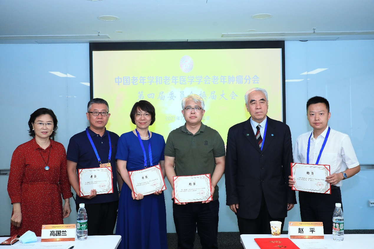 2021年7月16日,中国老年学和老年医学学会老年肿瘤分会第四届委员会换届大会在京举办。中国老年学和老年医学学会老年肿瘤分会主任委员、中国医学科学院肿瘤医院原院长赵平教授、中国老年学和老年医学学会副会长高国兰教授、中国老年学和老年医学学会秘书长翟静娴、老年肿瘤分会总干事长马飞教授、副总干事周爱萍教授等领导和专家到场参加,会议由中国老年学和老年医学学会老年肿瘤分会第三届委员会常务副主任委员王艾教授主持。