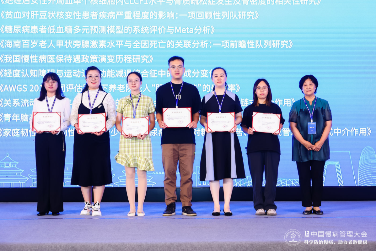 随后是大会征文颁奖环节。本届大会共录用合格论文347篇,涉及慢病管理六大领域。经21位学术委员会专家在线盲审,评选出优秀论文一等奖4篇、二等奖10篇、三等奖20篇和优秀青年论文奖10篇。在优秀论文颁奖获仪式上,获奖论文第一作者被授予“优秀论文”证书。部分获奖论文作者将在8月27日“论文交流论坛”上分享学术成果和交流经验与心得。
