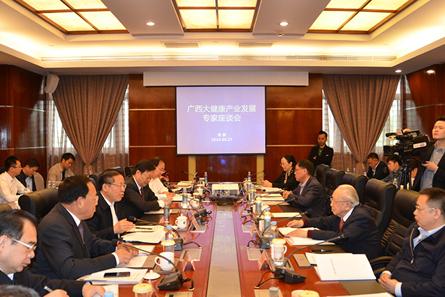 为发挥广西壮族自治区独特资源优势,推动健康长寿产业转型升级,2019年4月27日上午,广西壮族自治区人民政府与中国老年学和老年医学学会在北京广西大厦签署战略合作协议,并举办大健康产业发展专家座谈会。